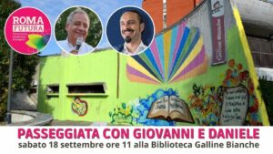 Sabato 18 settembre, ore 11, viale delle Galline Bianche 105. Ci vediamo di fronte alla biblioteca Galline Bianche per una piccola passeggiata nel quartiere Labaro.